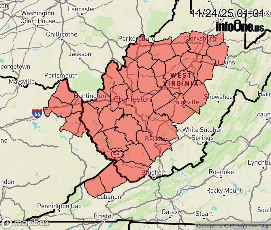 Canceled 11/24/25 4:00 AM Special Weather Statement issued November 24 at 1:00AM EST by NWS Charleston WV Areas of valley fog are developing in many of the high valleys and into the lower elevations of West Virginia, as well as into portions of northeast Kentucky and southwest Virginia. This fog is expected to continue expanding in coverage, so motorists should expect to encounter sudden changes in visibility if driving overnight and through mid-morning on Monday. If encountering an area of dense fog, slow down, increase the space between you and the vehicle in front of you, and use low beam headlights for safety and increased visibility. ![]() |