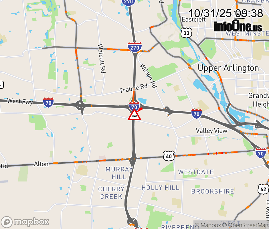 All lanes are closed on Ramp I-270 North to I-70 East (Westside), due to a crash. Updated: Fri 10/31/25 9:38 AM EDT ![]() Updated: Fri 10/31/25 9:38 AM EDT |