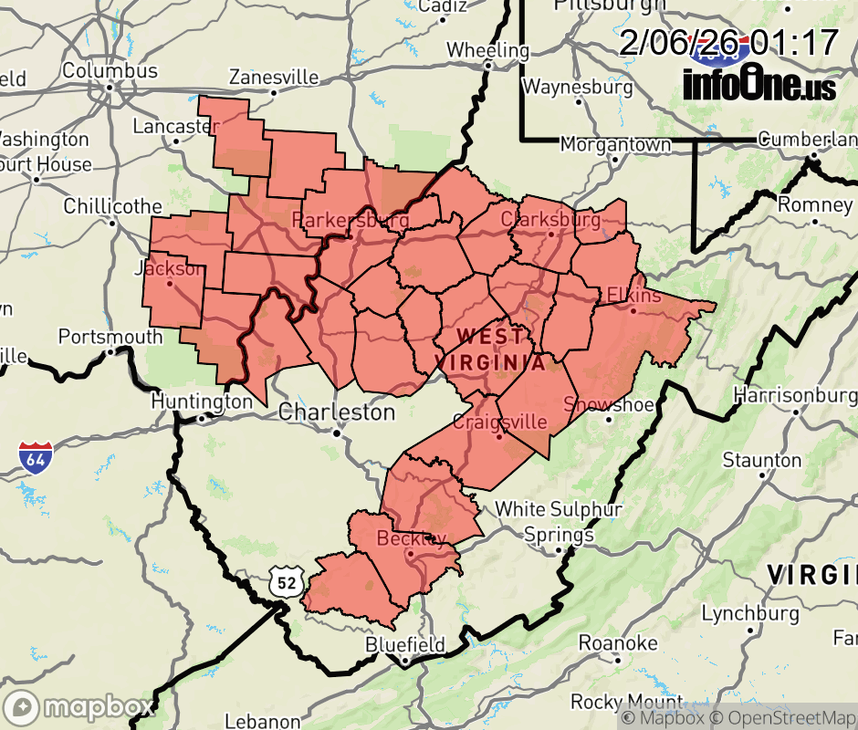 Canceled 2/6/26 7:04 AM Cold Weather Advisory issued February 6 at 1:16AM EST until February 7 at 1:00PM EST by NWS Charleston WV * WHAT... Very cold wind chills as low as 17 below expected. * WHERE... Portions of southeast Ohio and central, northeast, northern, southeast, southern, and western West Virginia. * WHEN... From 1 AM to 1 PM EST Saturday. * IMPACTS... The cold wind chills as low as 15 below zero could result in hypothermia or frostbite if precautions are not taken. ![]() |