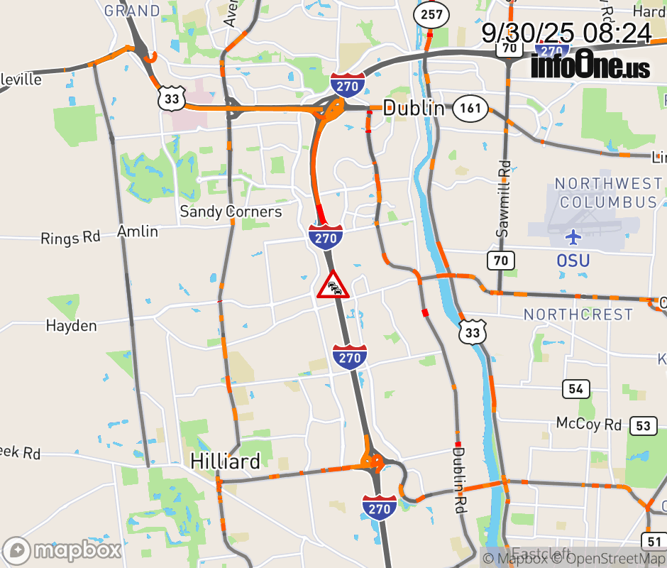 The left lane is blocked on I-270 South beyond Tuttle Crossing Blvd, due to a fire. ![]() |