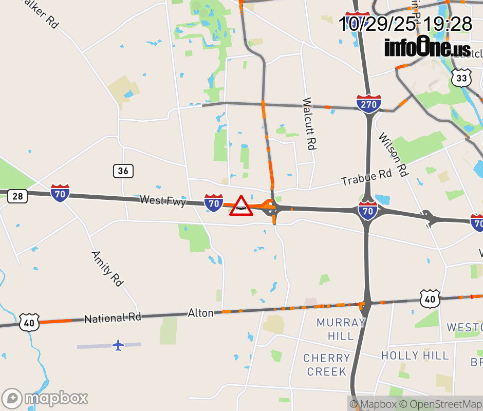 The right lane is blocked on I-70 West beyond Hilliard-Rome Rd South, due to a crash. Updated: Wed 10/29/25 7:28 PM EDT ![]() |