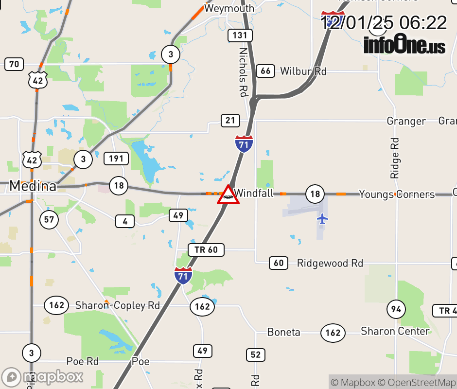 Canceled 12/1/25 6:30 AM Location: SR-18 East E, OH Accident.