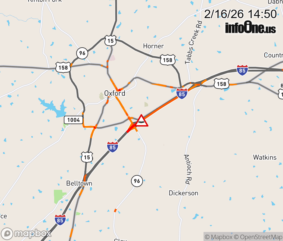 The left shoulder has reopened near Exit 204 (NC 96). Updated: Mon 2/16/26 2:50 PM EST ![]() Updated: Mon 2/16/26 2:50 PM EST |