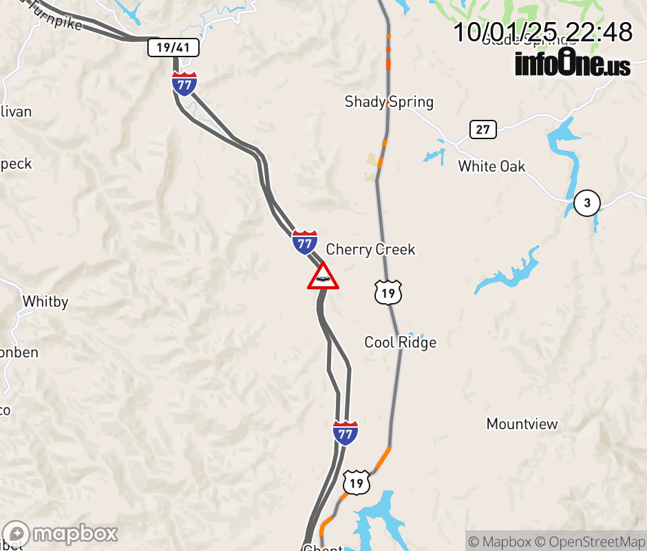 Canceled 10/2/25 12:58 AM Location: I-77 at MM 33.0, WV Accident.