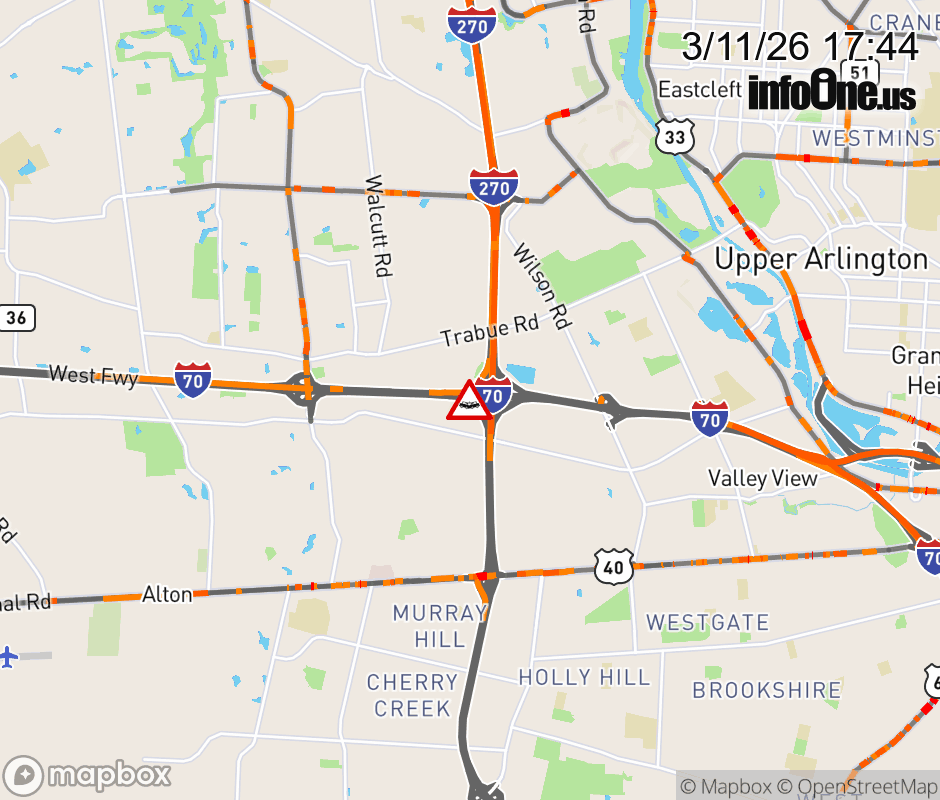 Ramp I-70 East to I-270 South CLOSED because of a crash. Updated: Wed 3/11/26 5:44 PM EDT ![]() Updated: Wed 3/11/26 5:44 PM EDT |