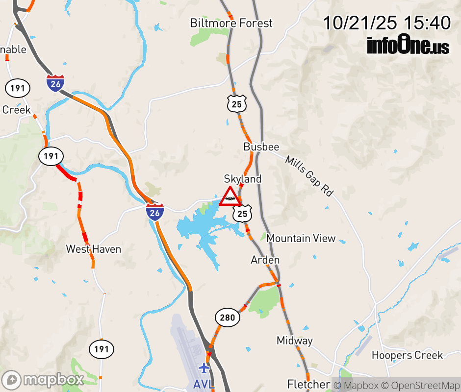 The left lanes are closed near US 25, Hendersonville Rd. ![]() |
