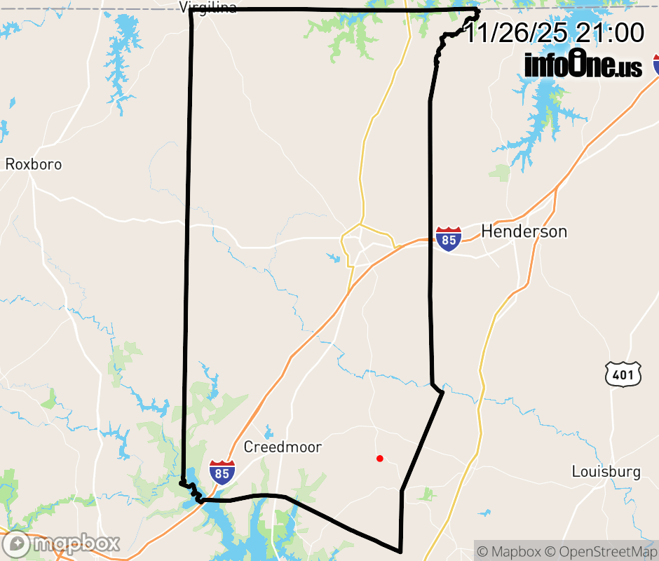 Canceled 11/26/25 9:20 PM Granville County has 1 power outage affecting 1 customer. Duke Energy 1 without power Estimated repair: Wed 10:30 PM Updated: Wed 11/26/25 9:00 PM EST ![]() Updated: Wed 11/26/25 9:00 PM EST |