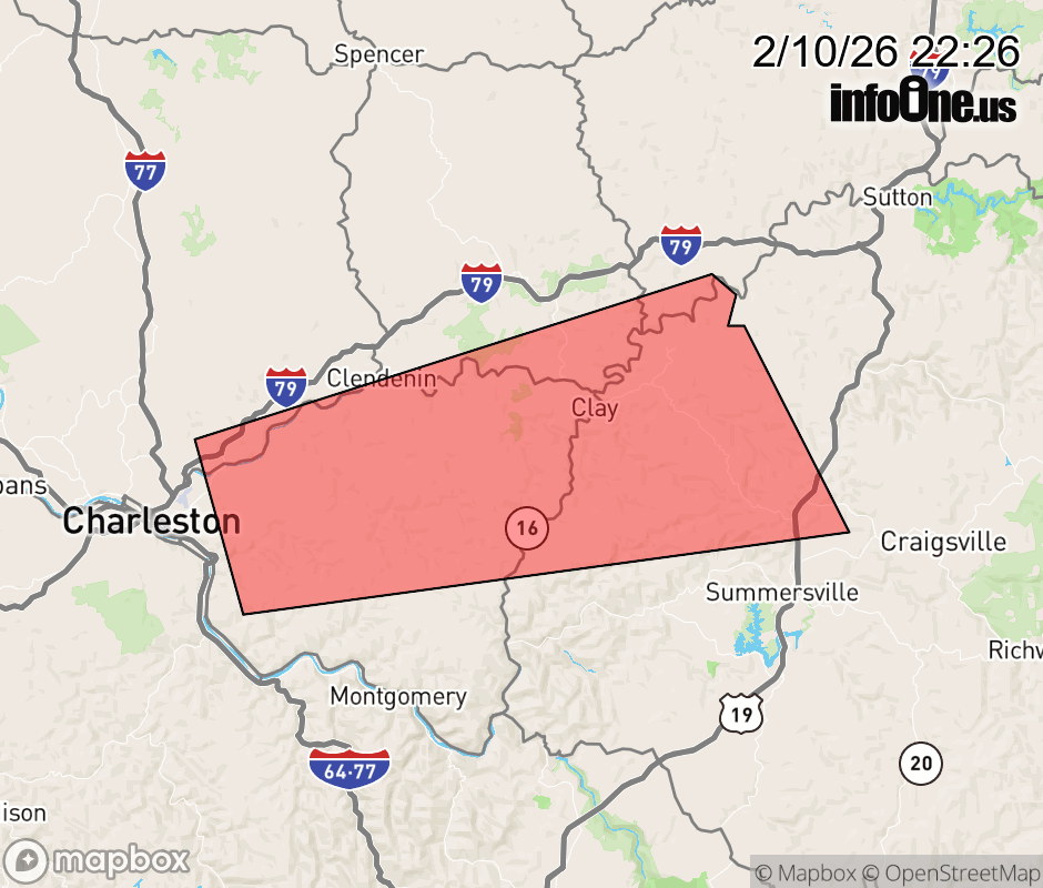 Canceled 2/10/26 11:00 PM Special Weather Statement issued February 10 at 10:24PM EST by NWS Charleston WV At 1024 PM EST, Doppler radar was tracking a strong thunderstorm over Pinch, or 9 miles east of Charleston, moving east at 60 mph. HAZARD...Wind gusts up to 40 mph and half inch hail. SOURCE...Radar indicated. IMPACT...Gusty winds could knock down tree limbs and blow around unsecured objects. Minor hail damage to vegetation is possible. Locations impacted include... Clay, Clendenin, Pinch, Glen, Coal Fork, Elkview, Harrison, Widen, Bickmore, Procious, Muddlety, Indore, and Ivydale. This includes the following highways... Interstate 79 between mile markers 4 and 8. Route 19 between mile markers 46 and 50. ![]() |