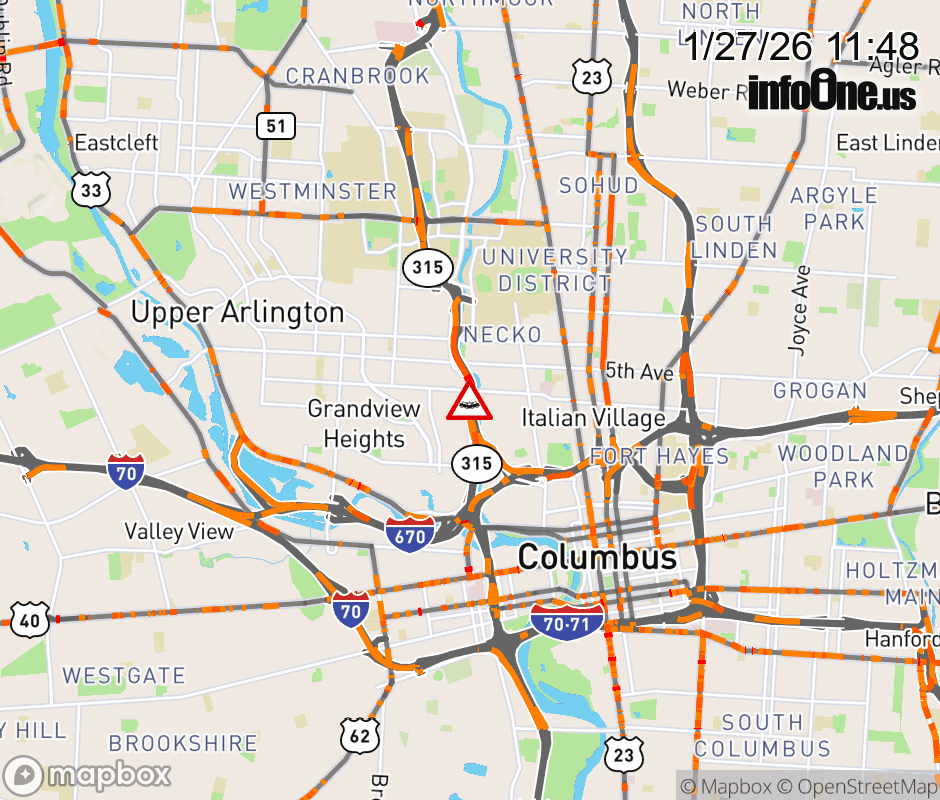 The left lane is blocked on SR-315 South at I-670 East, due to a crash. ![]() |