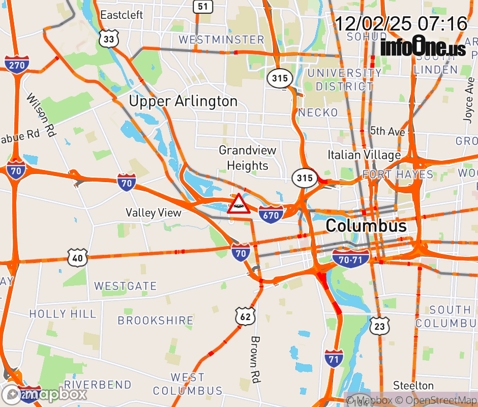 The right lane is blocked on I-670 East at Grandview Ave, due to a crash. ![]() |