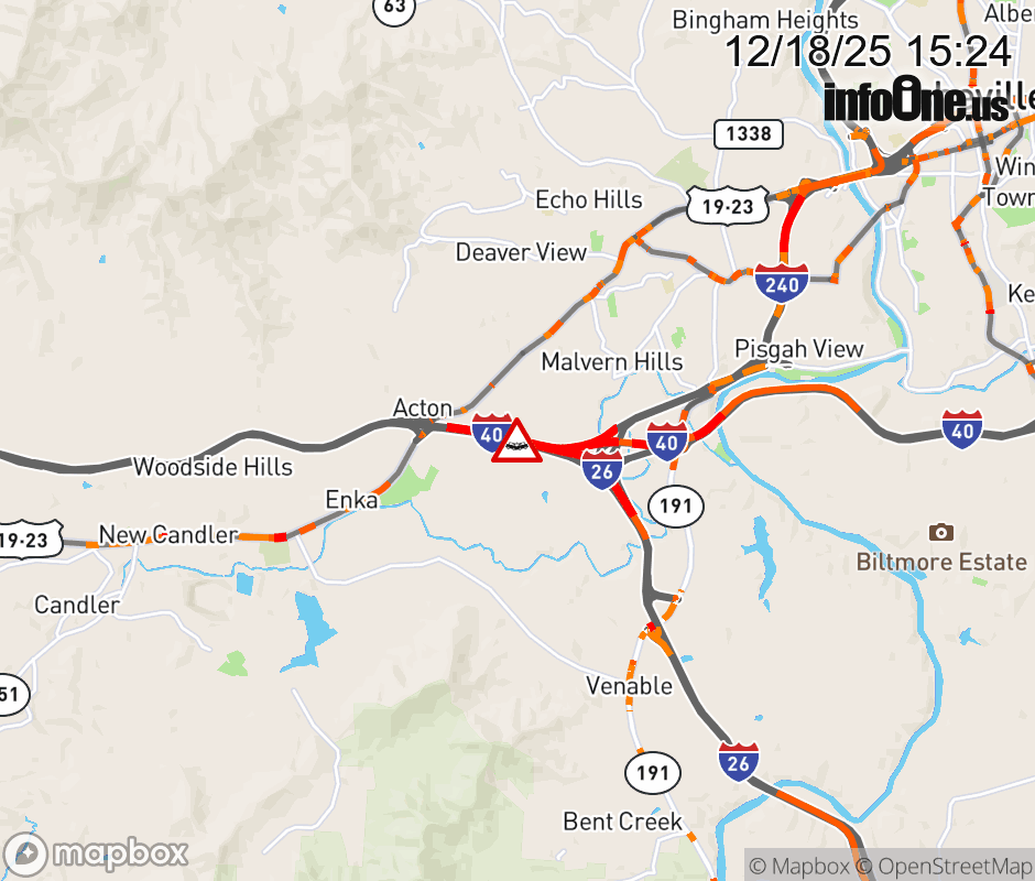 The right lanes are closed before Exit 44, US 23 (Smokey Park Hwy). Updated: Thu 12/18/25 3:24 PM EST ![]() Updated: Thu 12/18/25 3:24 PM EST |