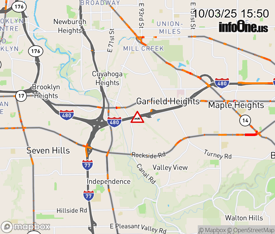 The left shoulder is blocked on I-480 East at Transportation Blvd/E 98th St, due to a disabled vehicle. Updated: Fri 10/3/25 3:50 PM EDT ![]() |