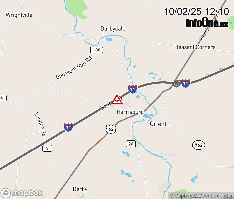 Expect lane closures on I-71 North beyond SR-56/London/Mt Sterling, due to a crash. Updated: Thu 10/2/25 12:10 PM EDT ![]() |