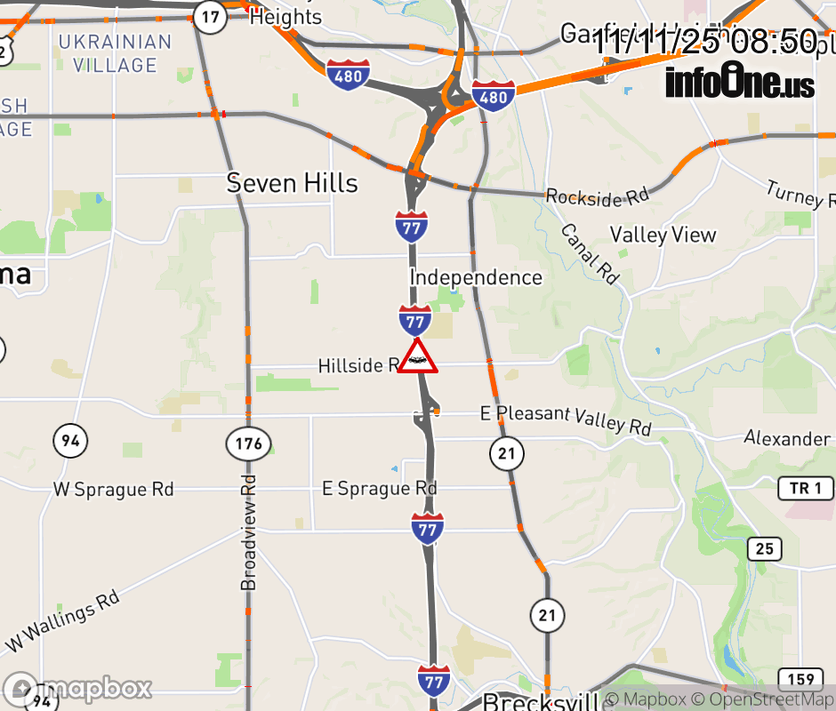 The 2 left lanes are blocked on I-77 South beyond Rockside Rd, due to a crash. ![]() |