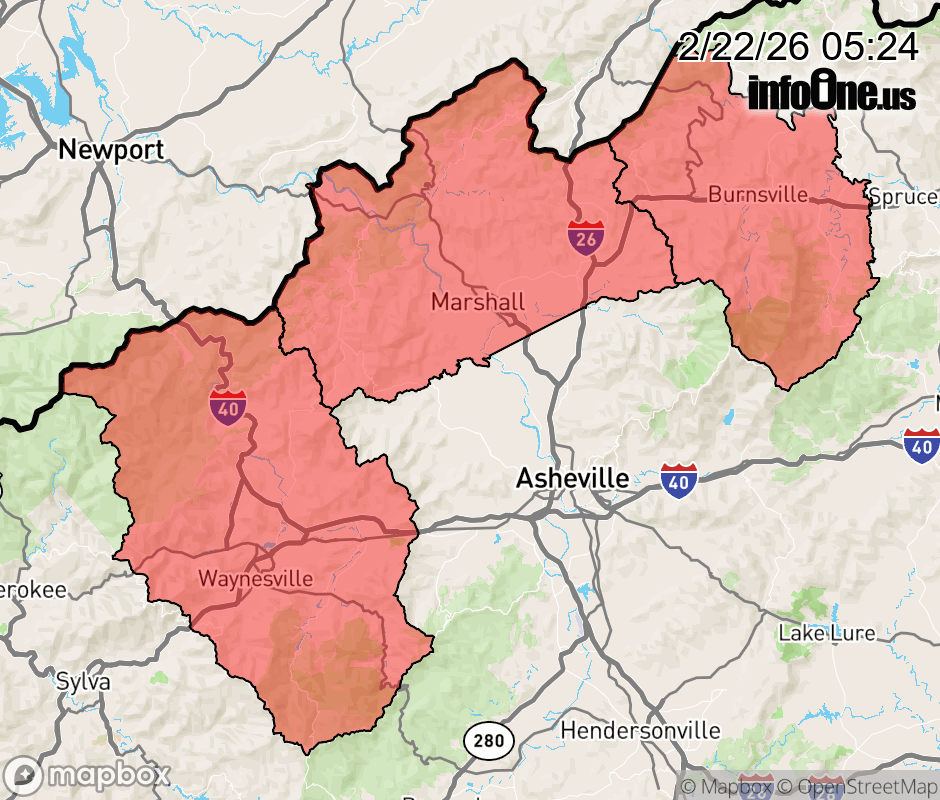 Canceled 2/22/26 1:25 PM Winter Weather Advisory issued February 22 at 5:23AM EST until February 24 at 12:00AM EST by NWS Greenville-Spartanburg SC * WHAT... Snow expected. Total snow accumulations mainly between 1 and 3 inches in the valleys. 4 to 7 inches with locally higher amounts are expected in the higher elevations, mainly along the Tennessee border. * WHERE... Haywood, Madison, and Yancey Counties. * WHEN... Until midnight EST Monday Night. * IMPACTS... The heavy snow will create snow covered roads and produce scattered power outages. The hazardous conditions could impact the Monday morning and evening commutes. Strong winds could cause extensive damage to trees and power lines. * ADDITIONAL DETAILS... Winds gusting as high as 50 mph could result in areas of blowing snow and very low visibility in the high elevations Sunday night and Monday. ![]() |