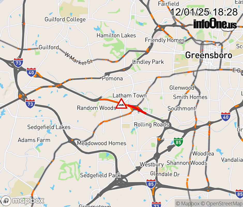The left lane is closed 1 mile past Exit 217 (W Gate City Blvd). Updated: Mon 12/1/25 6:28 PM EST ![]() Updated: Mon 12/1/25 6:28 PM EST |