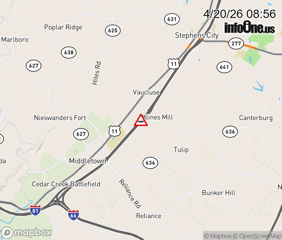 On I-81 at mile marker 304 in the County of Frederick, motorists can expect delays due to a vehicle crash. The south right shoulder is closed. ![]() |