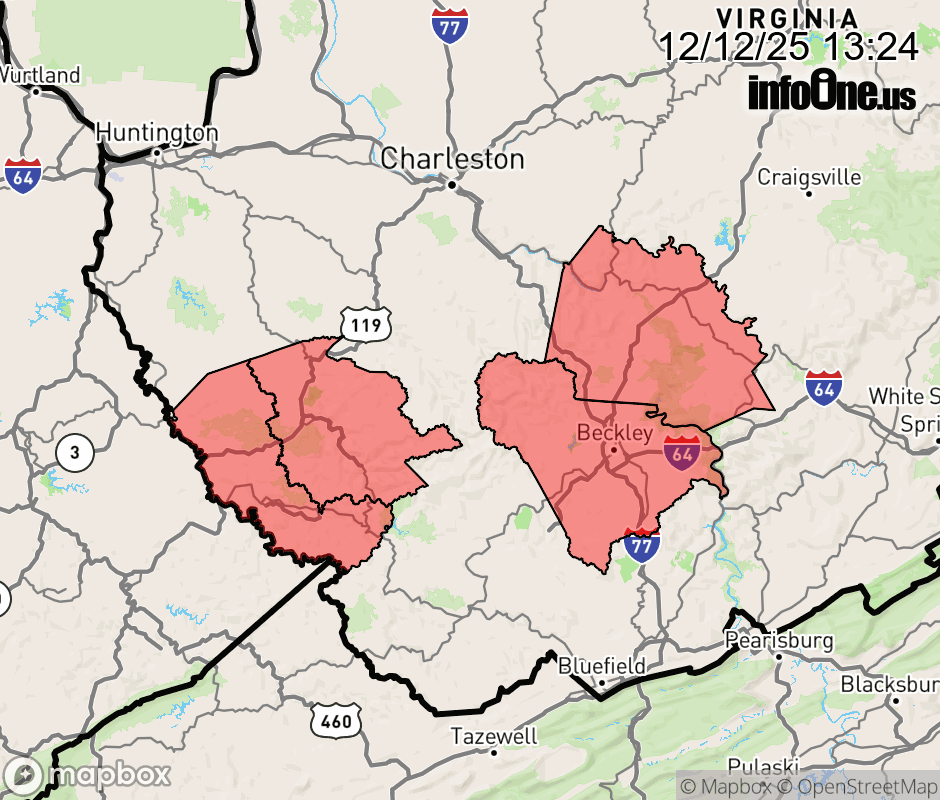 Canceled 12/12/25 9:32 PM Winter Weather Advisory issued December 12 at 1:22PM EST until December 14 at 1:00PM EST by NWS Charleston WV * WHAT... Mixed precipitation expected. Total snow accumulations between 1 and 3 inches with localized amounts of up to 4 inches. * WHERE... Portions of southeast and southern West Virginia. * WHEN... From 1 PM Saturday to 1 PM EST Sunday. * IMPACTS... Plan on slippery road conditions. The hazardous conditions could impact the Friday evening commute. ![]() |