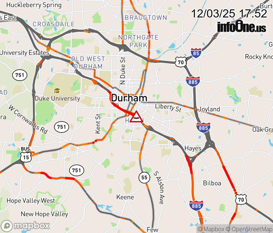 The right lane is closed near Exit 3 (Fayetteville St). ![]() |