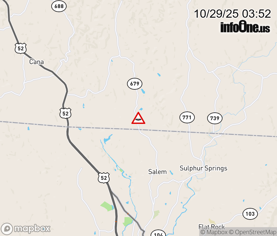 On Rt. 679 in the County of Carroll, in the vicinity of Fish Lake Rd; Rt. 687E/W (Carroll County), motorists can expect delays due to a vehicle crash. All north lanes are closed. All south lanes are closed. Updated: Wed 10/29/25 3:52 AM EDT ![]() Updated: Wed 10/29/25 3:52 AM EDT |