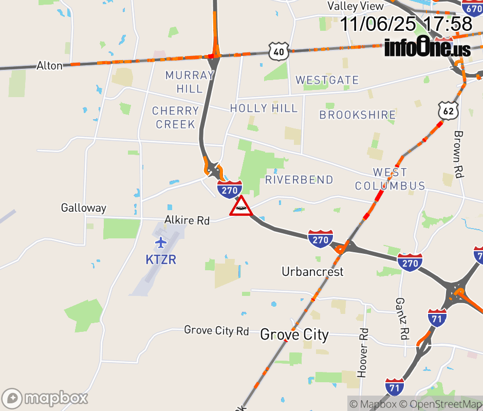 The right lane is blocked on I-270 East beyond Georgesville Rd, due to a crash. ![]() |