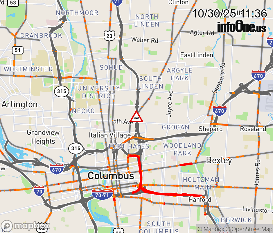 The right shoulder is blocked on I-71 North beyond I-670 West, due to a crash. Updated: Thu 10/30/25 11:36 AM EDT ![]() |