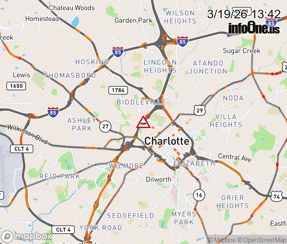 The right lane is closed at Exit 10 B (W Trade St). ![]() |