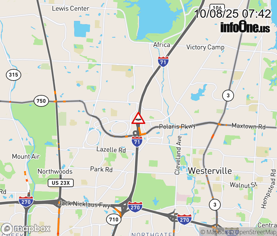 The center lane is blocked on I-71 South at Gemini Place To Polaris Pkwy, due to a crash.