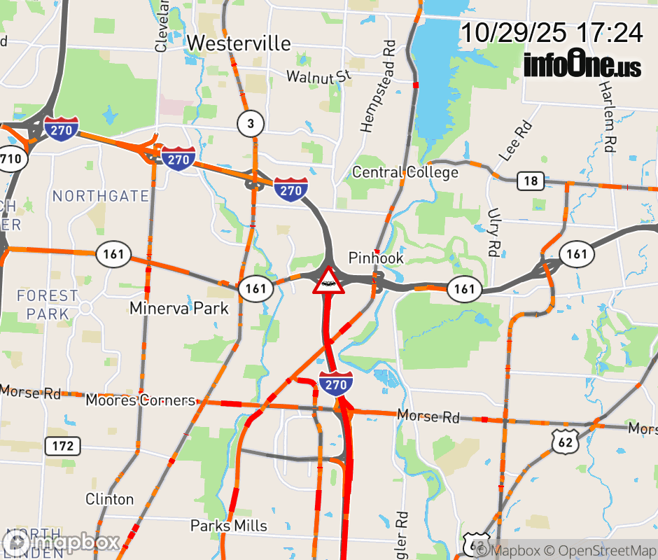 Shoulders are closed on I-270 North Collector beyond SR-161, due to a crash. Updated: Wed 10/29/25 5:24 PM EDT ![]() Updated: Wed 10/29/25 5:24 PM EDT |