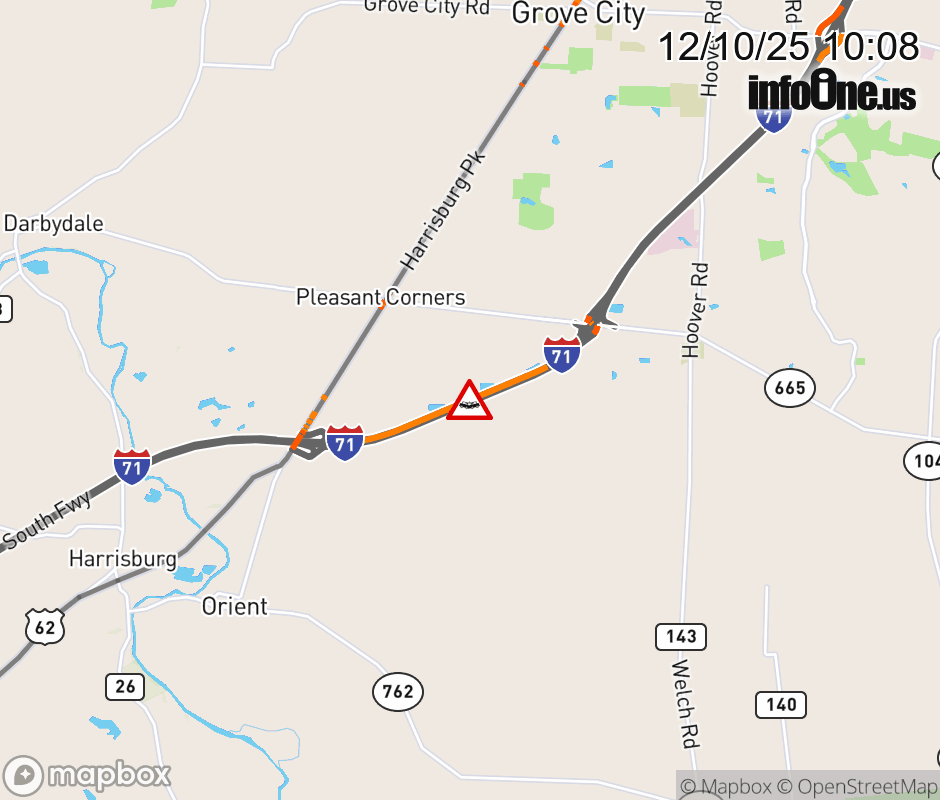 The right lane is blocked on I-71 South beyond SR-665/London - Groveport Rd, due to a crash. ![]() |