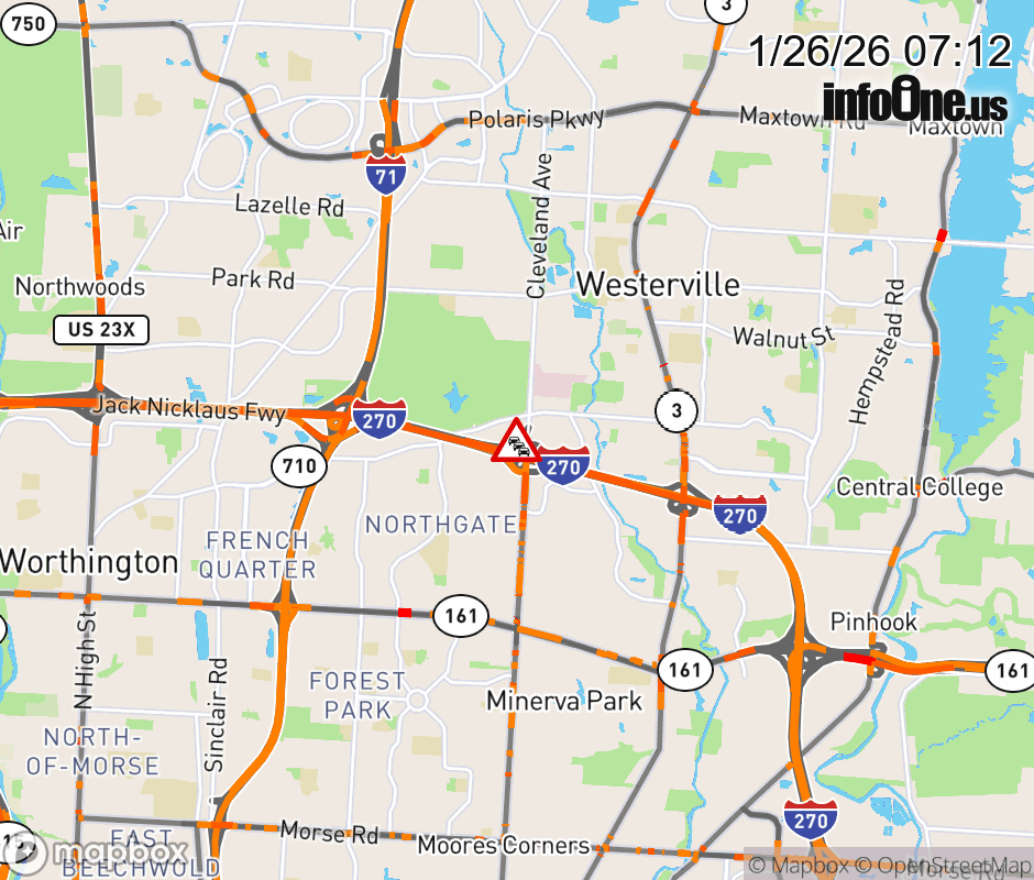 All lanes are closed on Ramp from Cleveland Ave to I-270 W at I-270 W, due to snow/ice. ![]() |