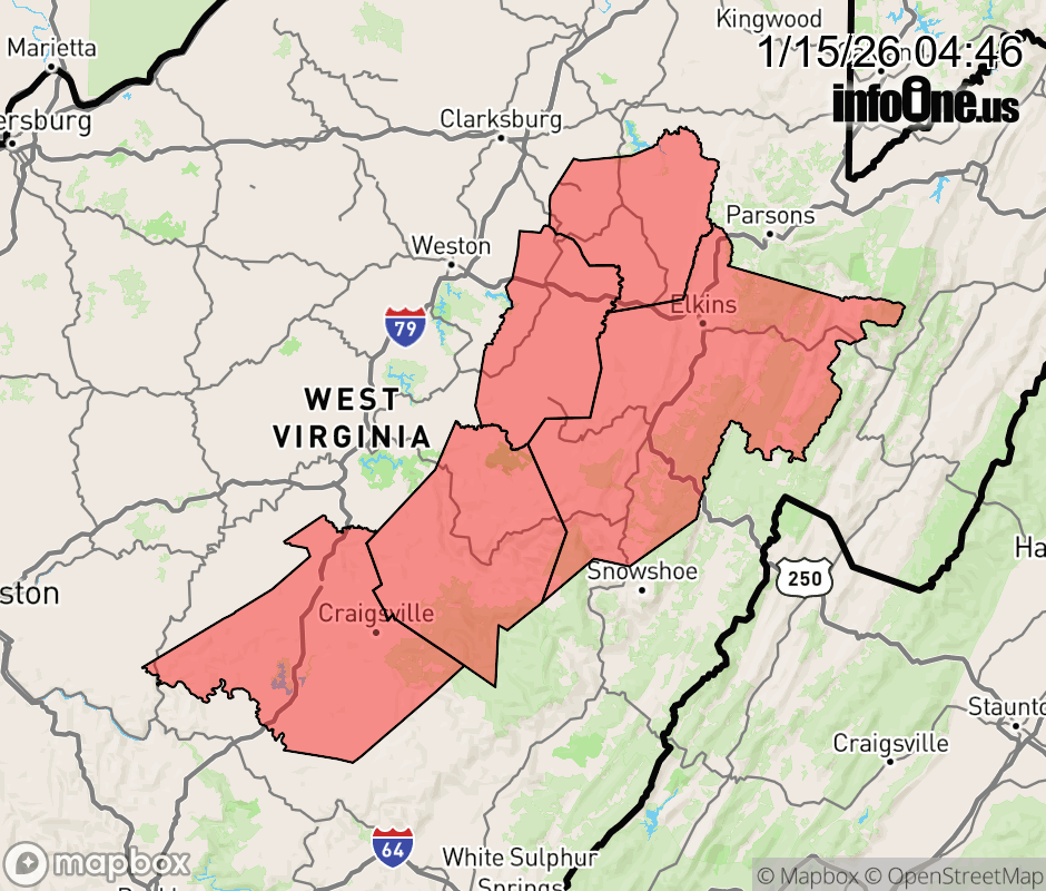 Canceled 1/15/26 9:46 AM Winter Weather Advisory issued January 15 at 4:44AM EST until January 15 at 1:00PM EST by NWS Charleston WV * WHAT... Snow. Additional snow accumulations up to two inches. Winds gusting as high as 35 mph. * WHERE... Northwest Randolph, Northwest Webster, Barbour, Upshur, and Southeast Nicholas Counties. * WHEN... Until 1 PM EST this afternoon. * IMPACTS... Plan on slippery road conditions. The hazardous conditions could impact the Thursday morning commute. ![]() |