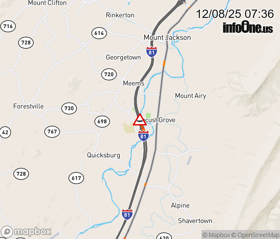 On I-81 at mile marker 269.4 in the County of Shenandoah, motorists can expect delays due to a tractor trailer crash. The north right shoulder is closed. Updated: Mon 12/8/25 7:36 AM EST ![]() Updated: Mon 12/8/25 7:36 AM EST |