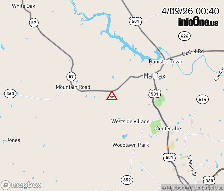 On Rt. 654 in the County of Halifax, in the vicinity of Grubby Rd; Rt. 678E/W (Halifax County), motorists can expect delays due to a vehicle crash. All east lanes are closed. All west lanes are closed. Updated: Thu 4/9/26 12:40 AM EDT ![]() Updated: Thu 4/9/26 12:40 AM EDT |
