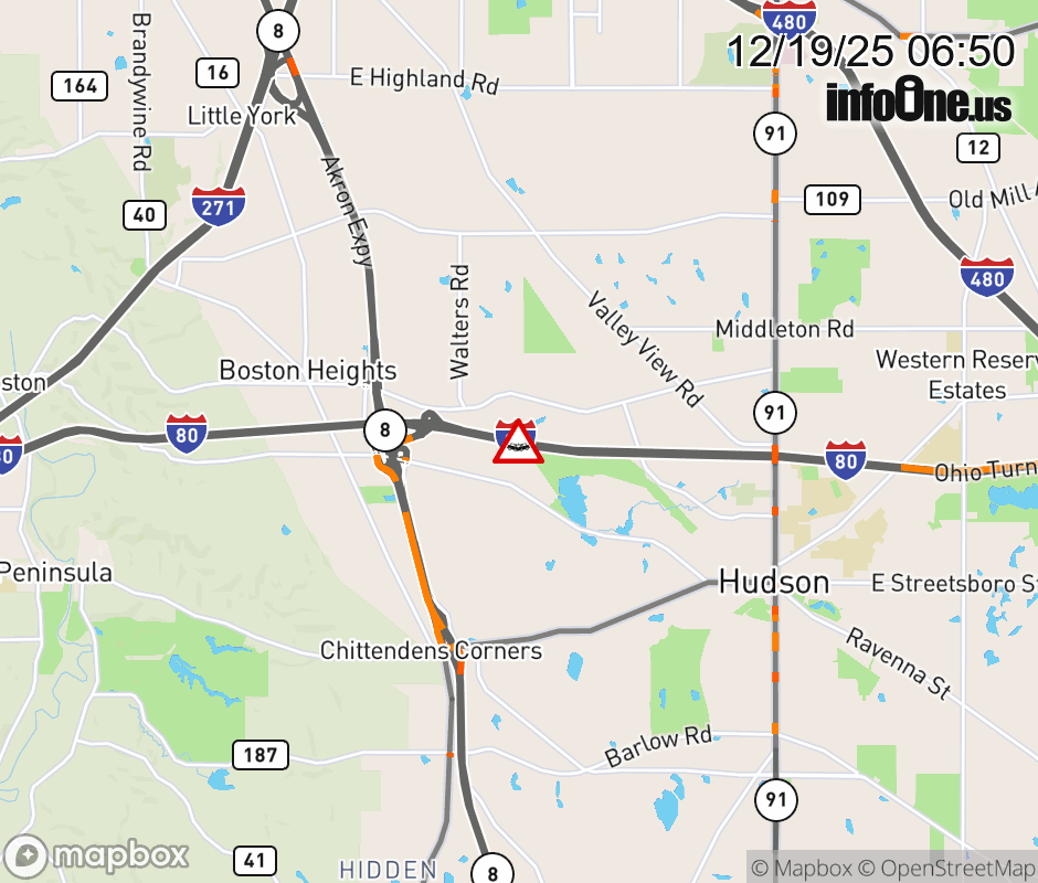 Expect lane closures on I-80 West (Ohio Turnpike) beyond I-480/SR-14, due to a crash. ![]() |
