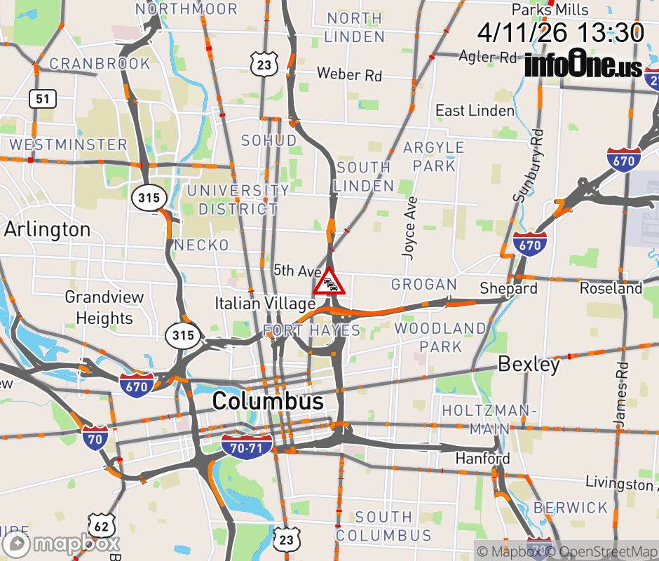All lanes are closed on Ramp from E 5th Ave to I-670 W at I-71 S, due to repairs/maintenance. ![]() |