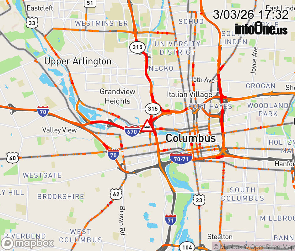 The right shoulder is blocked on I-670 West beyond SR-315 South, due to a crash. ![]() |