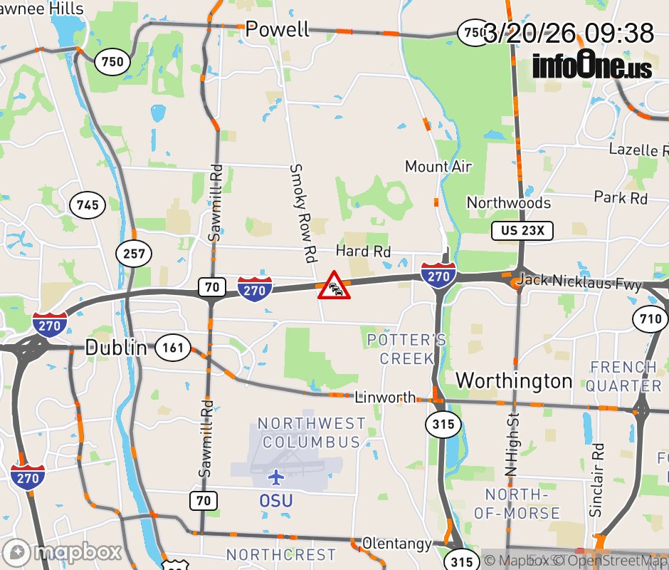 The right lane is blocked on I-270 East beyond Sawmill Rd, due to repairs/maintenance. ![]() |