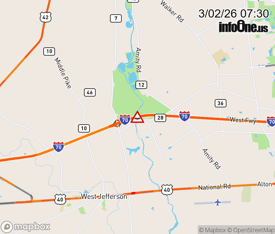 The right lane is blocked on I-70 East beyond SR-142/Plain City, due to a crash. ![]() |