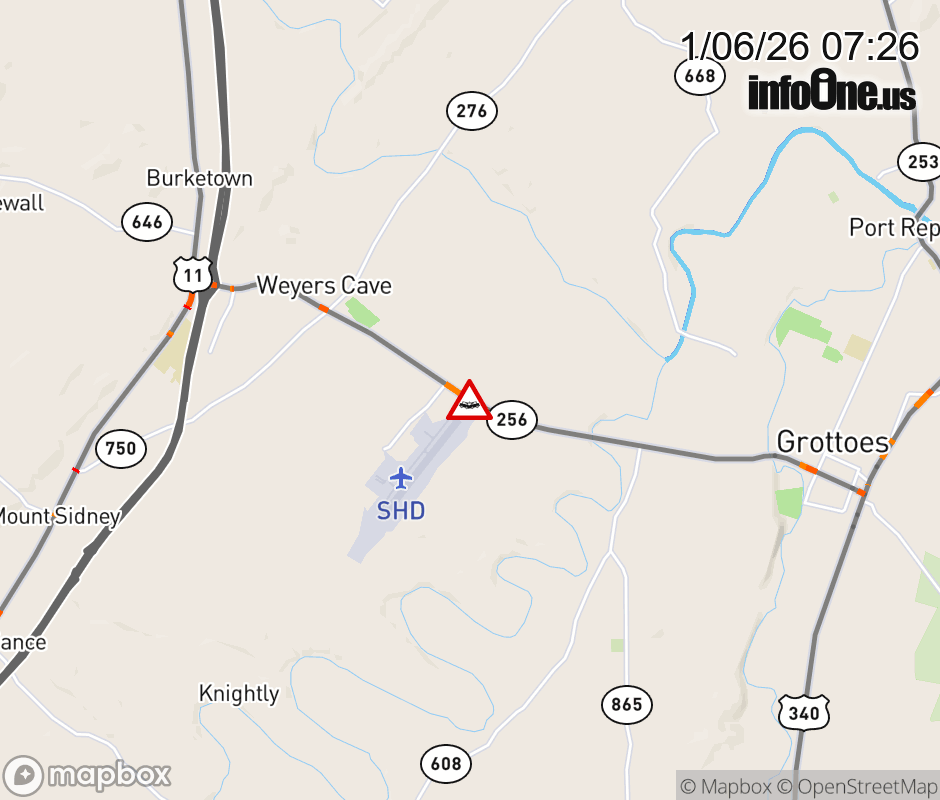 On VA-256 in the County of Augusta, in the vicinity of Oakland Farm Rd; Rt. 669N/S (Augusta County), motorists can expect delays due to a vehicle crash. All east lanes are closed. ![]() |