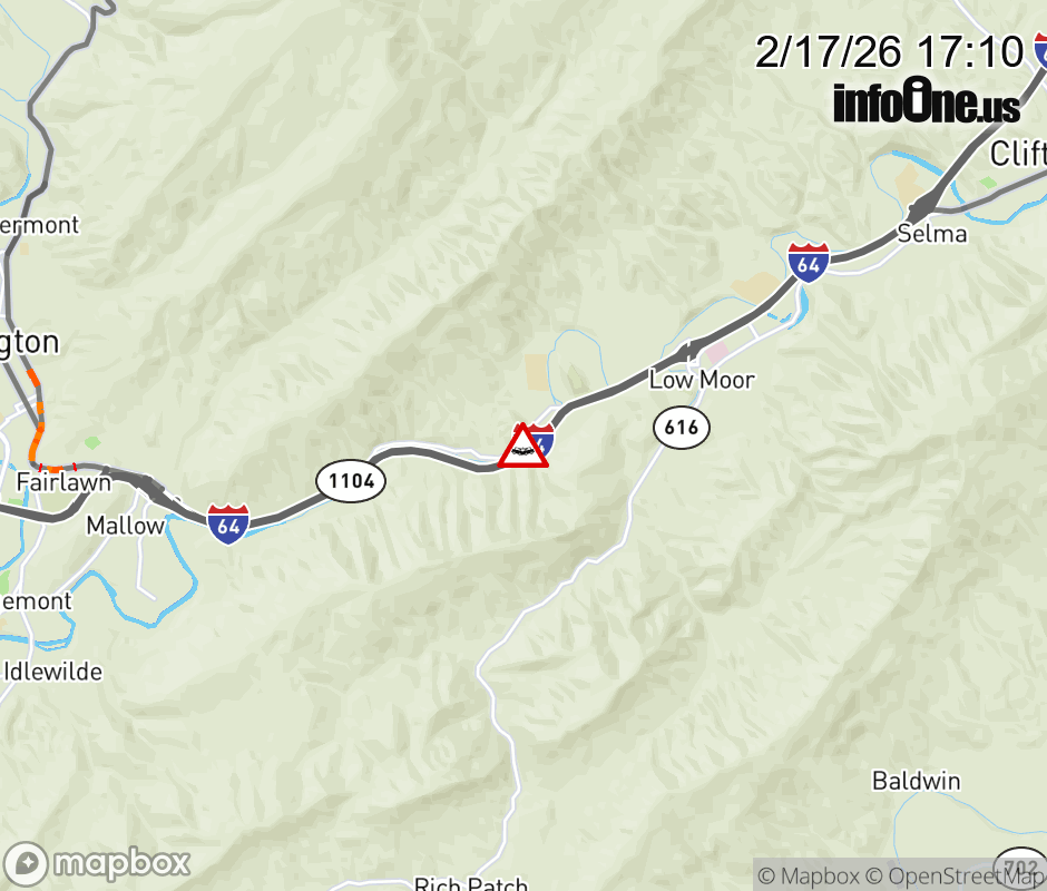 On Rt. 1104 in the County of Alleghany, in the vicinity of Butternut Hls; Rt. 1103N/S (Alleghany County), motorists can expect delays due to a tractor trailer crash. All east lanes are closed. All west lanes are closed. Updated: Tue 2/17/26 5:10 PM EST ![]() Updated: Tue 2/17/26 5:10 PM EST |