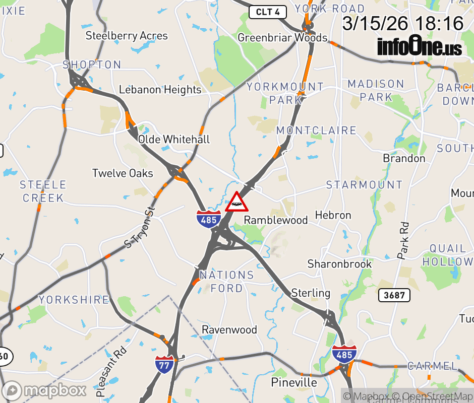 The left lane is closed after Exit 1 (I-485). ![]() |