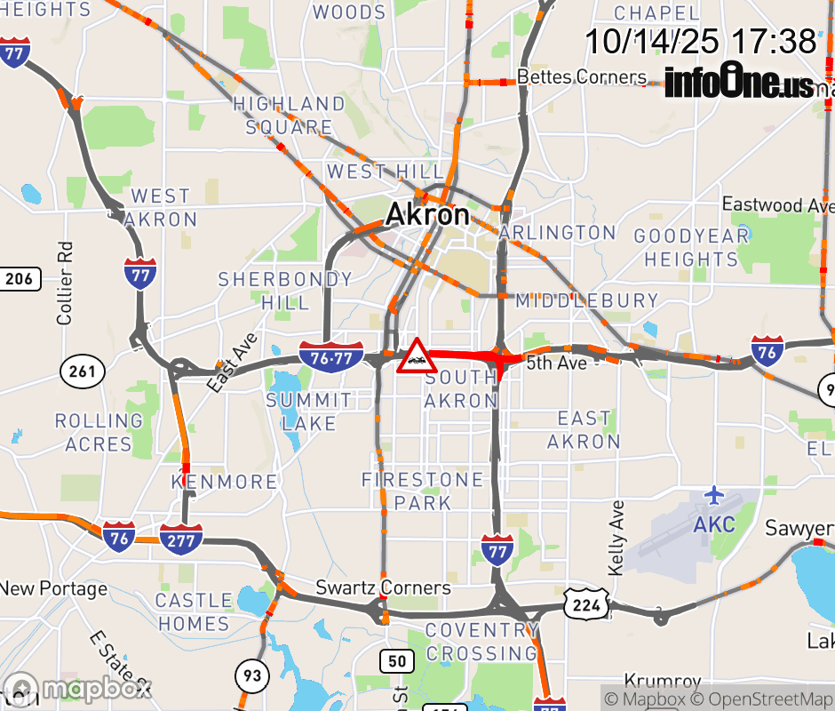 The left shoulder is blocked on I-76 East/I-77 South beyond Main St/Downtown, due to a disabled vehicle. ![]() |