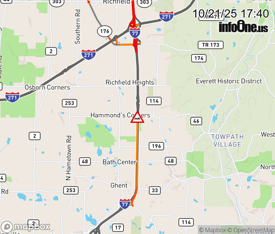 The left lane is blocked on I-77 South beyond Summit County Rest Area 4-32, due to a disabled vehicle. ![]() |