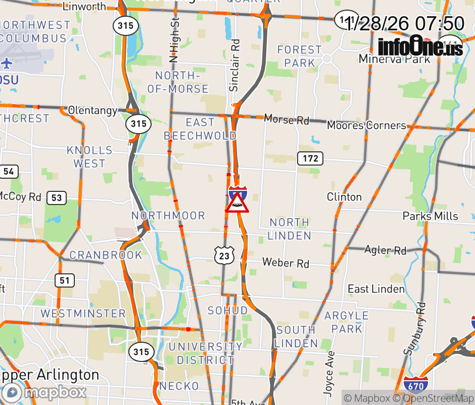 The right lane is blocked on I-71 South beyond E Cooke Rd, due to a crash. ![]() |