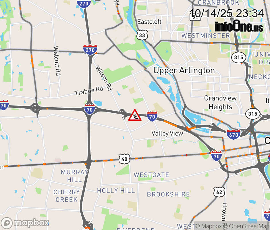 All lanes are blocked on I-70 East beyond Wilson Rd, due to repairs/maintenance. Updated: Tue 10/14/25 11:34 PM EDT ![]() Updated: Tue 10/14/25 11:34 PM EDT |