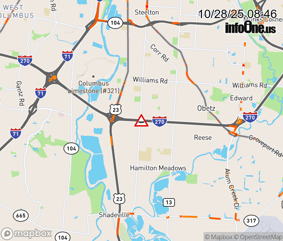 The right shoulder is blocked on I-270 West beyond Alum Creek Dr, due to a crash. ![]() |