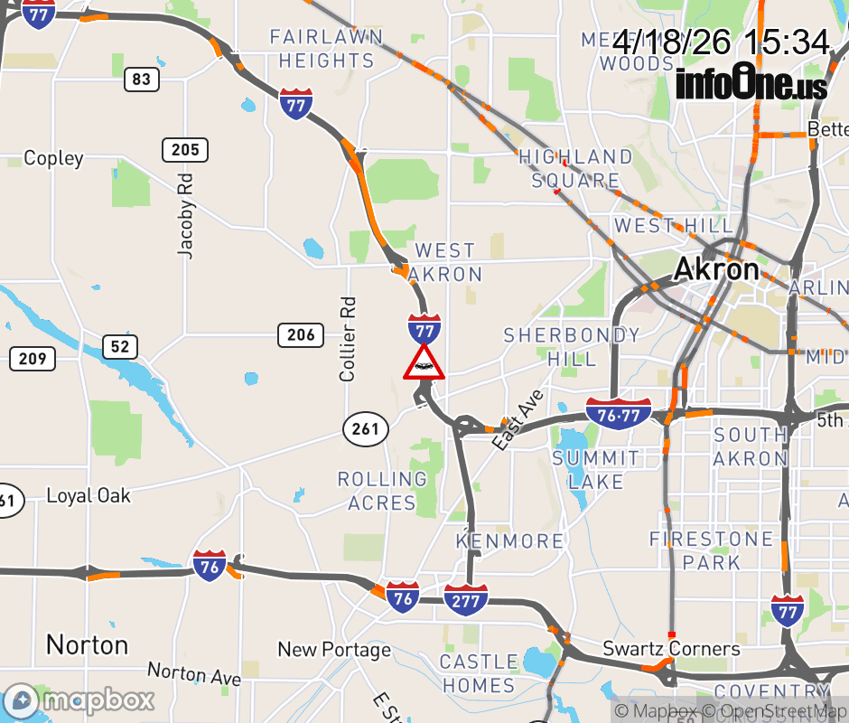 The 3 left lanes are blocked on I-77 North beyond SR-261/V Odom Blvd, due to a crash. Updated: Sat 4/18/26 3:34 PM EDT ![]() Updated: Sat 4/18/26 3:34 PM EDT |