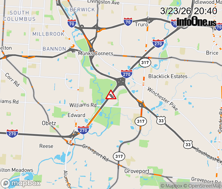 The 2 left lanes are blocked on I-270 South beyond US-33 East, due to repairs/maintenance. ![]() |