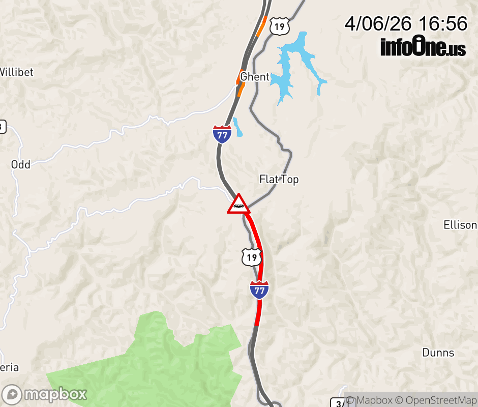 Vehicle Crash on I-77S at Mile Marker 26.5. Updated: Mon 4/6/26 4:56 PM EDT ![]() Updated: Mon 4/6/26 4:56 PM EDT |